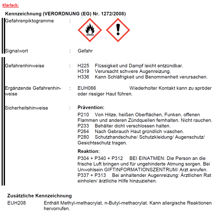 Erläuterungen der einzelnen Gefahren- und Sicherheitshinweise (H- und P-Sätze) wurden als Artikelbilder angefügt!