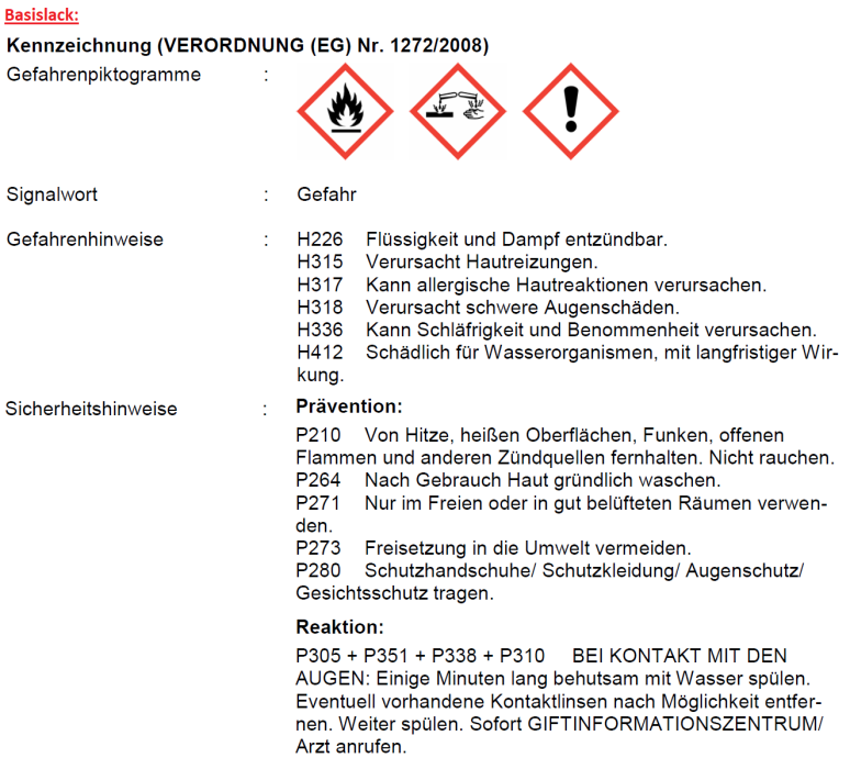 Erläuterungen der einzelnen Gefahren- und Sicherheitshinweise (H- und P-Sätze) wurden als Artikelbilder angefügt!